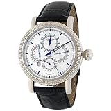 Réserve spéciale Timemaster Symphony Calendrier Watch Les Stührling Original hommes est un épanouissement du style cosmopolite et la grâce. Protégé par un verre Krysterna, le cadran circulaire est une couleur argentée vives et harmonisées par le noir et luminescent, bleu tons marqueurs de bâton sur le cadran extérieur entourant quatre sous-cadrans exquis pour le jour de mesure, mois, heure militaire et double fuseau horaire . Un facile à lire-fenêtre de date se trouve au-dessus de la position de sept heures. Le cadran est enfermé par un superbe acier inoxydable